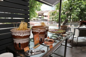 This yearβs buffet presents a comforting spread of traditional Malaysian favourites, thoughtfully crafted to evoke the familiar flavours of home. Taking centre stage is a Roasted Whole Lamb, slow-roasted until tender and juicy, and served with a selection of signature sauces. The feast continues with well-loved classics such as Ayam Bakar Percik Utara and Gulai Daging Kawah Nangka Muda, complemented by an assortment of hearty soups featuring gearbox, bone, vein, and chicken meat. Guests may also indulge in freshly carved Arabic Shawarma, known for its smoky and succulent texture, alongside chicken and beef satay, expertly char-grilled to achieve a crisp exterior and tender interior, served with traditional condiments.